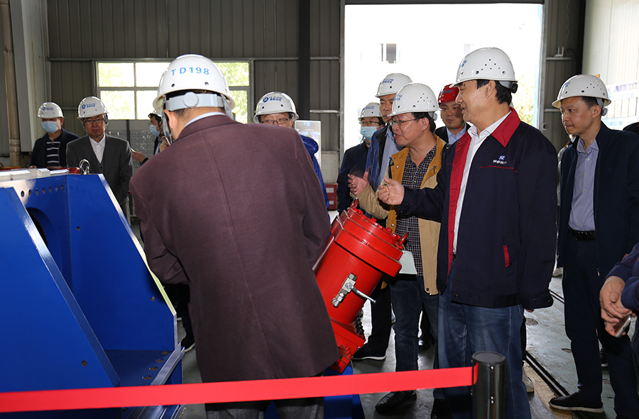 銅都流體董事長楊成陪同與會專家參觀工廠
