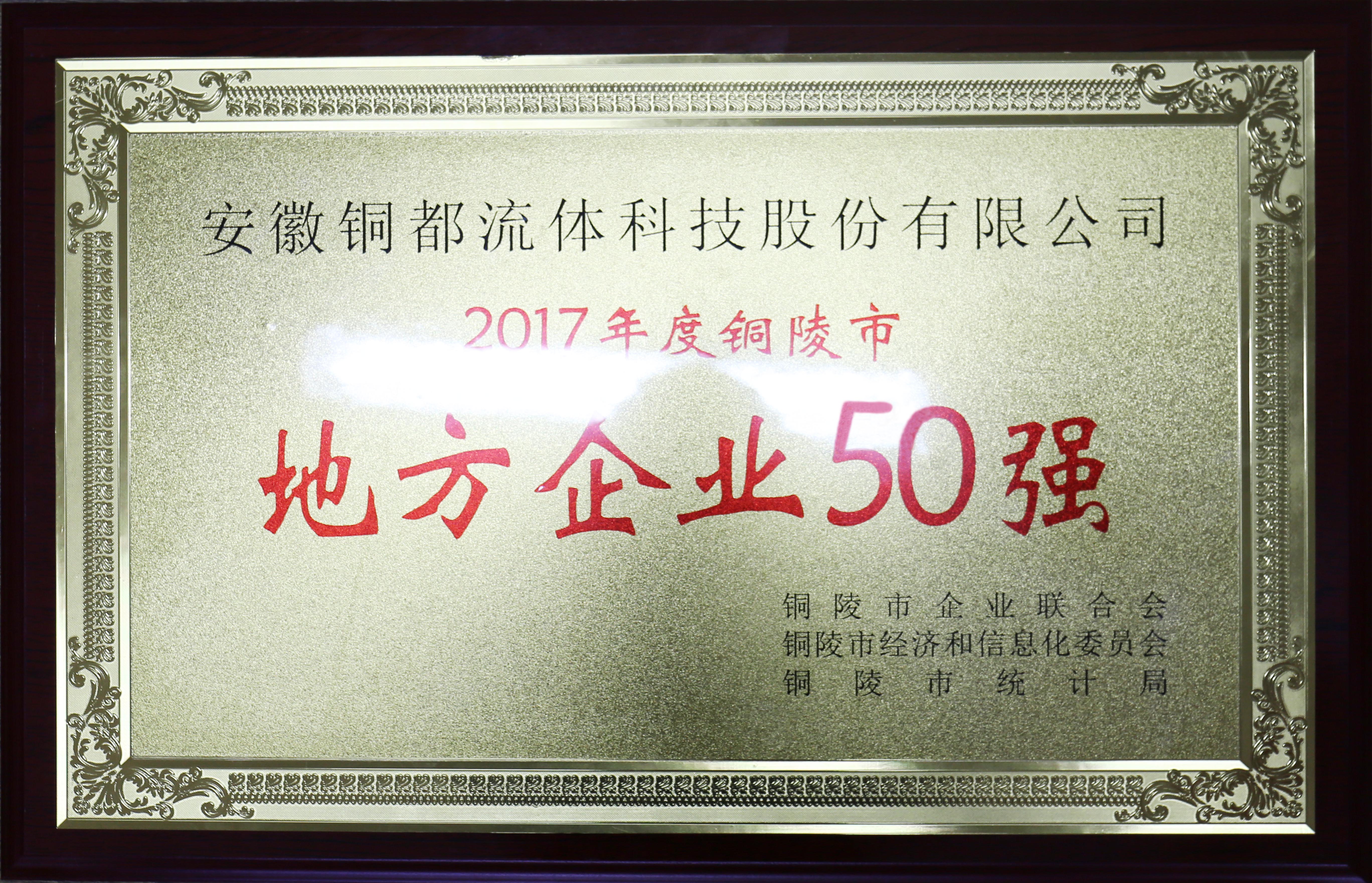 根據中共中央、國務院兩辦關于《貫徹落實〈中共中央、國務院關于營造企業(yè)家健康成長環(huán)境,弘揚優(yōu)秀企業(yè)家精神更好發(fā)揮企業(yè)家作用的意見〉分工方案》文件要求,展示銅陵市骨干企業(yè)的良好形象和發(fā)展業(yè)績,市企業(yè)家聯合會、市經信委、市統(tǒng)計局參照國際慣例和國內通行做法,以銅陵市地方法人企業(yè)作為申報資格,以2017年企業(yè)營業(yè)收入為主要標準,開展了2017年銅陵市"地方企業(yè)50強"評比活動,安徽銅都流體科技股份有限公司榜上有名。