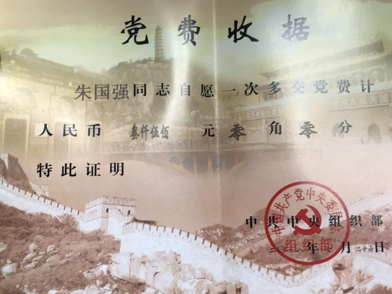 公司鉚焊車間員工、共產黨員朱國強同志,主動將自己獲得"銅陵好人"榮譽的獎勵金3500元,作為特殊黨費上交,受到中央組織部的充分肯定和贊揚,并頒發(fā)特殊《黨費收據(jù)》證書。