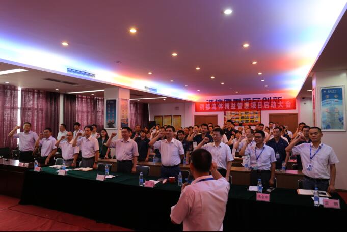 與會人員共同宣誓將精益生產項目持之以恒推進下去。標志著公司精益生產項目正式啟航。