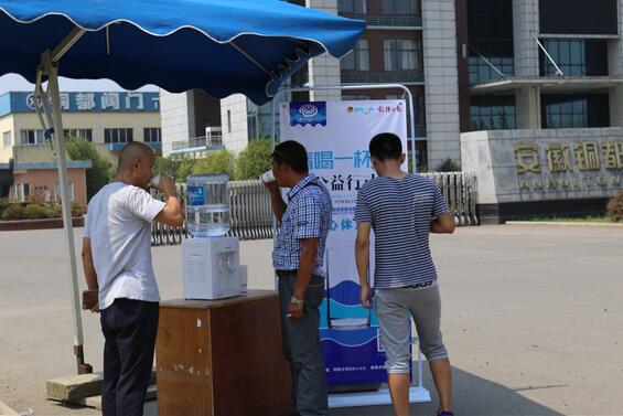 他們用汗水,方便了市民的生活、他們用汗水,洗去了城市的塵埃,因為要堅守崗位,甚至有時無法在口渴時喝一杯涼水,也無法在酷暑難耐時稍作休息。炎炎夏日,一杯清水對坐在辦公室的市民來說,是微不足道的,但是對高溫酷暑下的為戶外高溫作業(yè)人員來說,喝一杯清水在繁忙的一天中卻顯得如此奢侈。7月25日,共青團銅陵市委、銅陵日報社聯(lián)合發(fā)起"請喝一杯水"愛心公益活動后,我公司立即響應(yīng)號召,在我公司大門口設(shè)立愛心崗?fù)?愛心休息站",為在烈日下工作的人們提供夏季的一絲涼意。