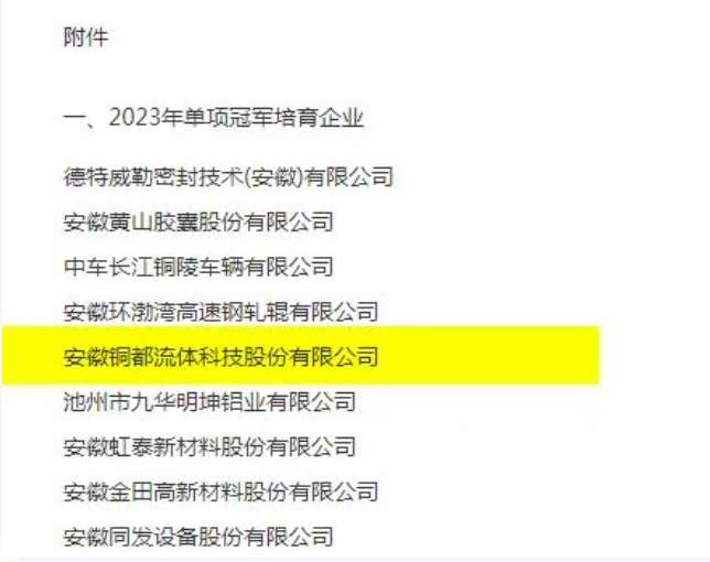 2023年安徽省制造業(yè)單項(xiàng)培育企業(yè)名單