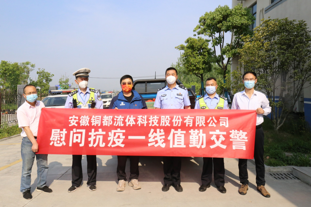 警企同心,共抗疫情!4月12日上午,銅都流體黨委書記、總經(jīng)理?xiàng)盍杞軒ш?duì)前往G50滬渝高速銅陵收費(fèi)站,慰問奮戰(zhàn)在疫情防控一線的公安交警,并贈(zèng)送抗疫生活物資,表達(dá)了對(duì)抗疫一線工作者的崇高敬意。