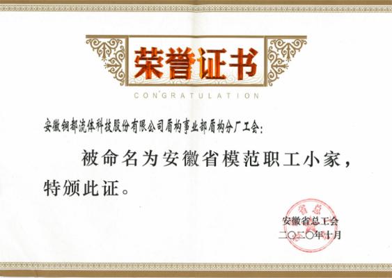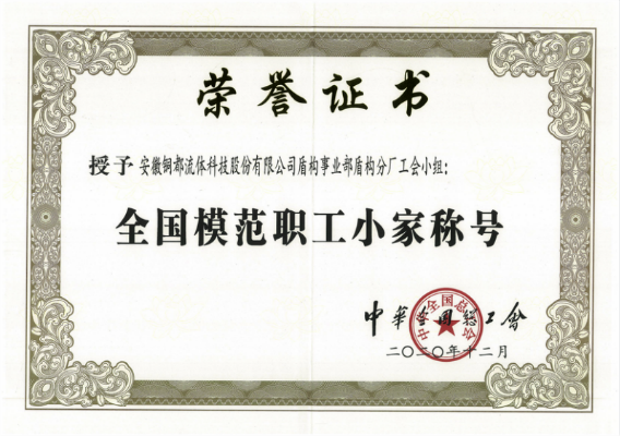 近日,安徽銅都流體科技股份有限公司盾構(gòu)事業(yè)部盾構(gòu)分廠工會(huì)小組憑借出色的工作榮獲由中華全國總工會(huì)頒發(fā)的2020年“全國模范職工小家”榮譽(yù)稱號(hào),同時(shí)被安徽省總工會(huì)評(píng)選“安徽省模范職工小家”榮譽(yù)稱號(hào)。