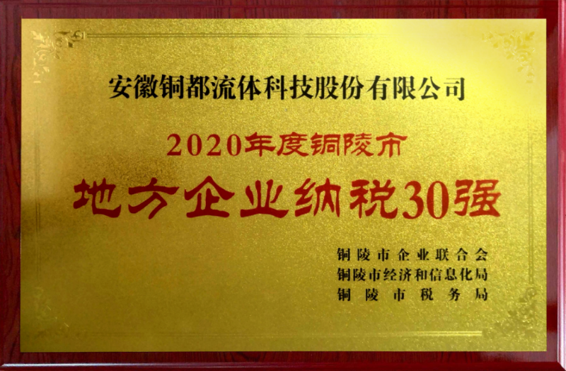 銅陵市縣(區(qū))經(jīng)信局、稅務(wù)局、縣(區(qū))企聯(lián)、開發(fā)區(qū)企業(yè)服務(wù)局開展的2020年度銅陵市“地方企業(yè)50強”、“納稅30強”評選活動名單出爐,銅都流體榜上有名。