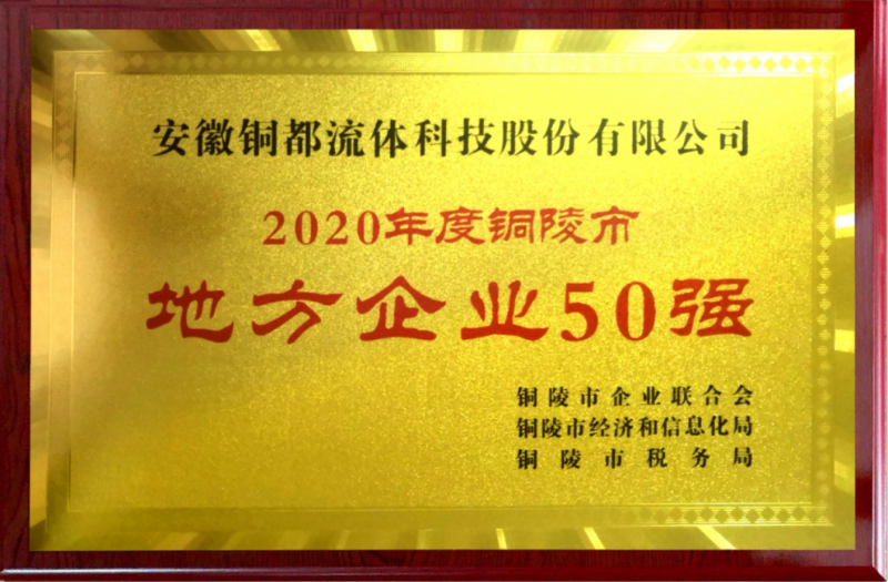“銅都流體地方企業(yè)50強”