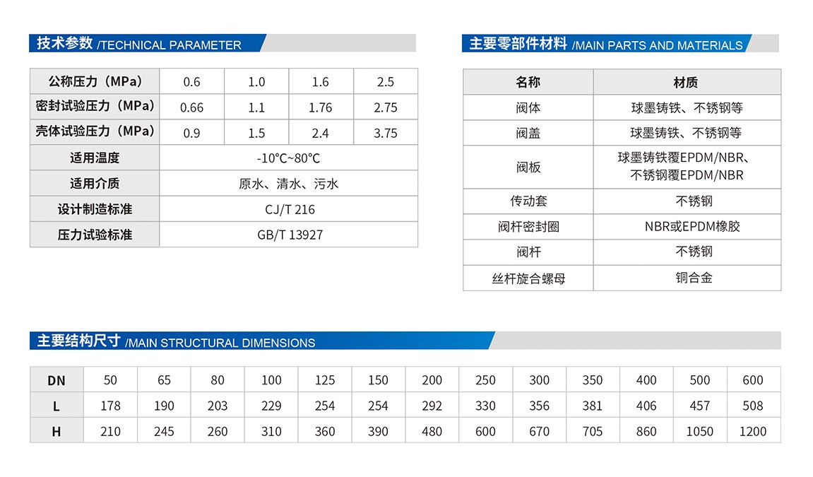 閥門(mén)不會(huì)生銹,與介質(zhì)接觸的橡膠及環(huán)氧樹(shù)脂涂層均不會(huì)對(duì)水質(zhì)構(gòu)成影響。